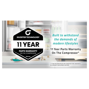 The Hisense HRBM503S is covered by 3 year/s manufacturer warranty. Includes 11 Years Warranty on Inverter Compressor (Parts Only)
